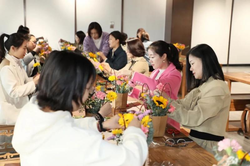 遲日江山麗,春風(fēng)花草香!睘檎故緩V大女職工奮發(fā)向上的精神風(fēng)貌,豐富女職工業(yè)余文化生活,3月7日,滕州市婦聯(lián)、市交通發(fā)展集團(tuán)在滕州市婦女兒童活動(dòng)中心舉辦了慶!叭斯(jié)”--“女性素質(zhì)提升”花藝技能培訓(xùn),旨在以花遇人,以花喻人,以花育人,讓參與活動(dòng)的女職工們?cè)诨ɑ艿姆枷闩c妍美中感受美、欣賞美、創(chuàng)造美,以花傳情,傳遞快樂,陶冶情操,提升美感。市婦聯(lián)黨組成員、副主席、市婦女兒童事務(wù)服務(wù)中心主任王蕾,滕州市婦聯(lián)四級(jí)主任科員黃秀蓮,集團(tuán)黨委委員、副總經(jīng)理、工會(huì)主席李丹出席活動(dòng)。