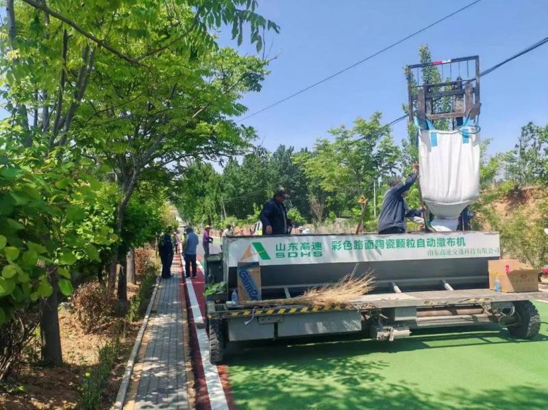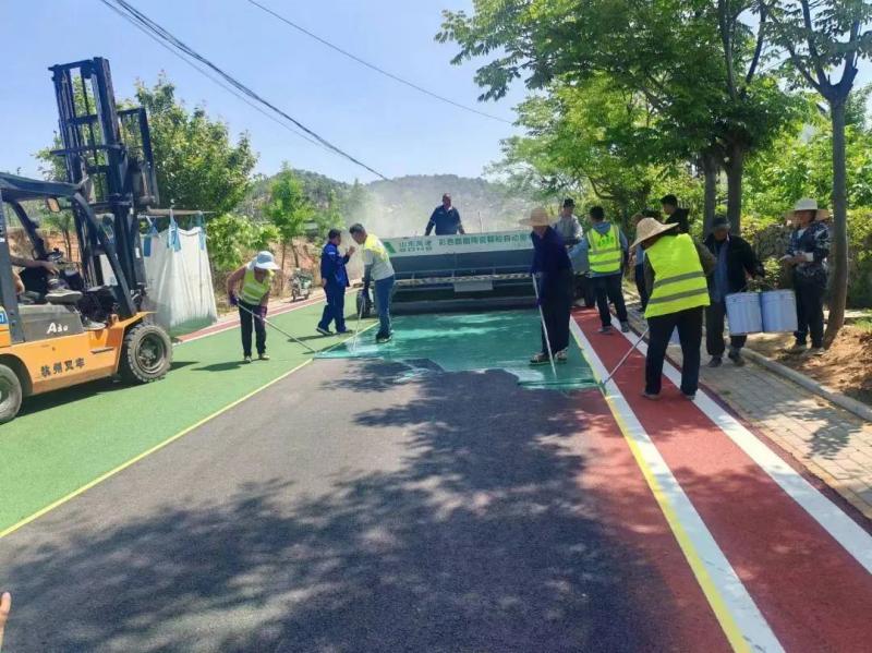4月29日,在風景秀麗的蓮青山腳下,蓮微綠道旅游公路施工現(xiàn)場,機器轟鳴,施工人員身影忙碌,加緊項目的收尾作業(yè),隨著最后一段路面的施工完成,彩色路面鋪設任務順利完工。